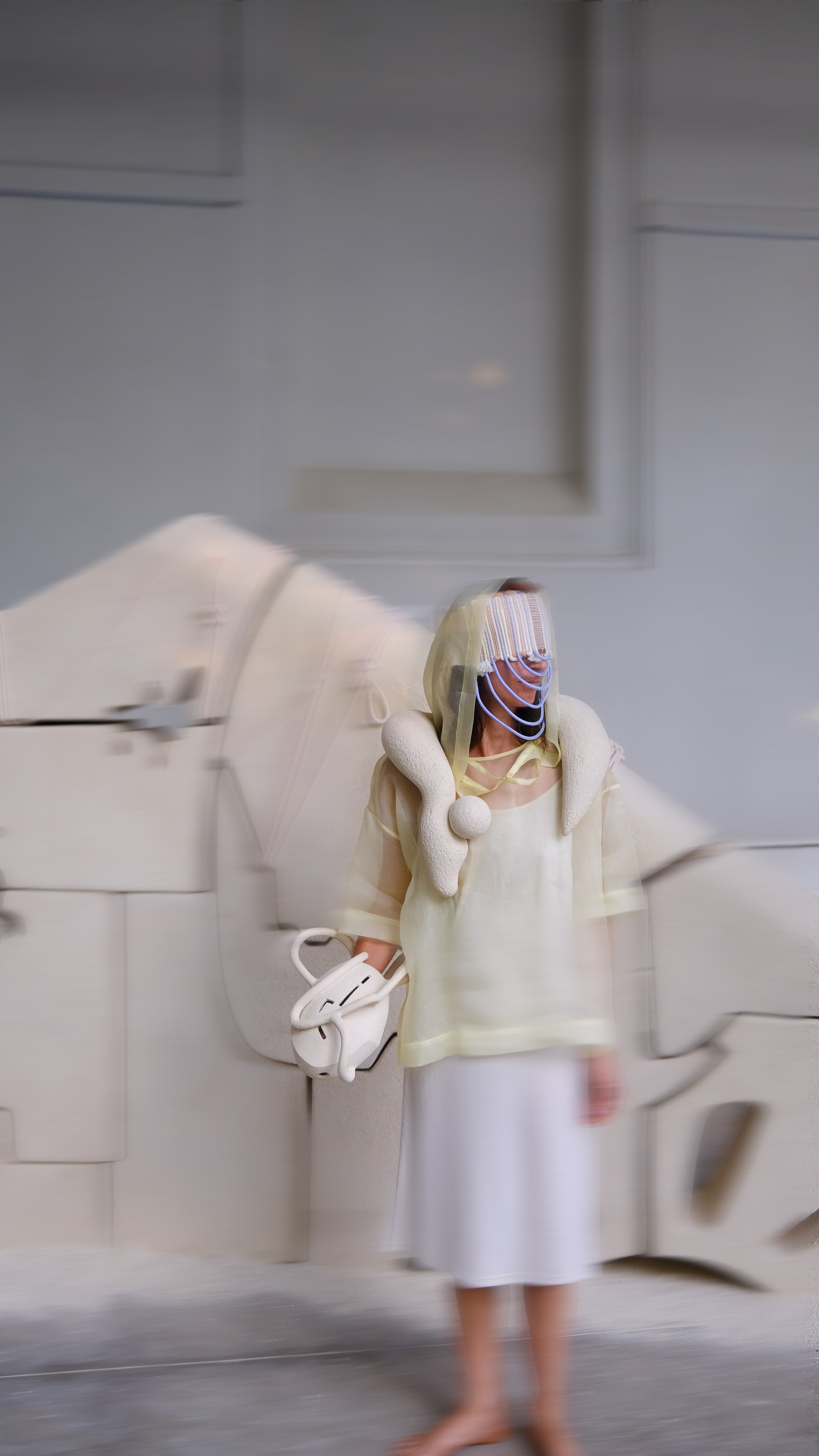 Le travail autour de la sculpture de corps et le costume d’art occupe la recherche de Manon Oller depuis l’été 2024. Être mirages est la première performance imaginée par l’artiste et présentée durant l’exposition Êtres ici en juillet 2025.
