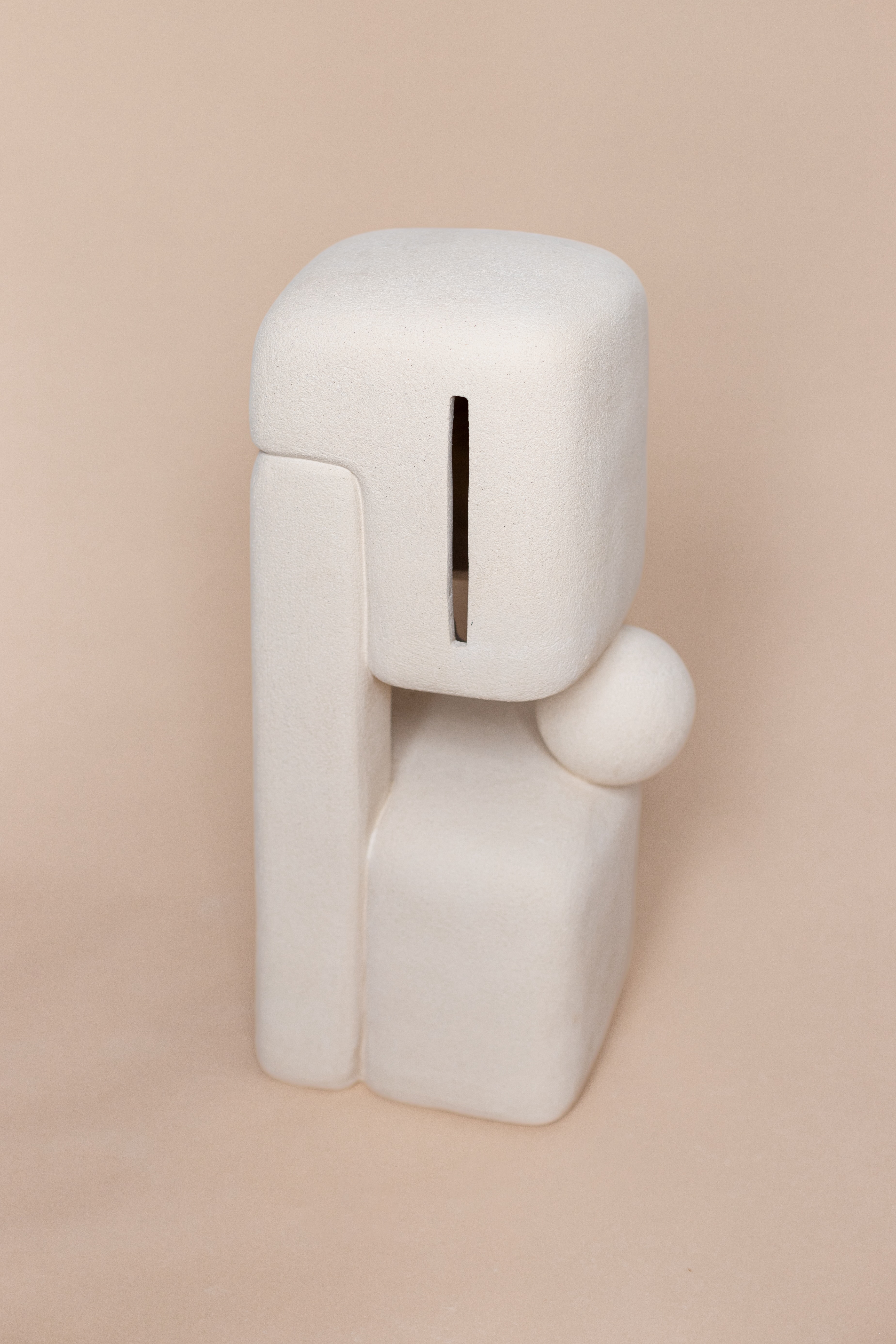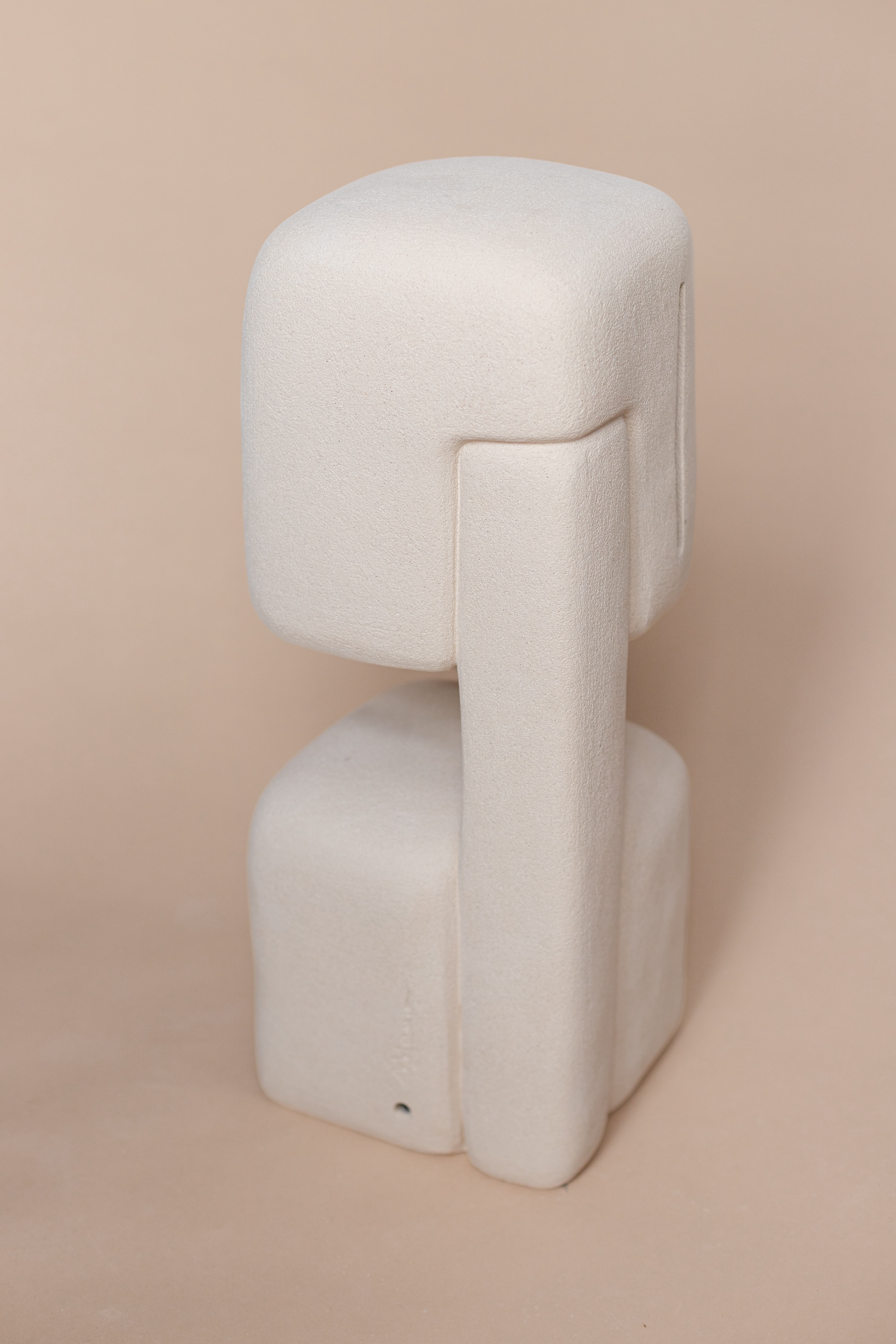 Meute dans la meute, les CUBO, jouent de l’ambiguité entre une forme massive d’une sculpture creusée dans un bloc de roche, et la volupté d’un ballon gonflable. Ces sculptures font du contraste des matières et des perceptions leur structure architecturale.